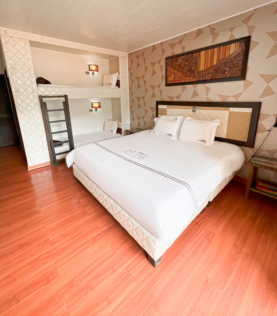 The rooster needs to go. He starts crowing at 3 am non stop. I’m writing this review at 5 am cause that rooster wakes me up every morning. Other than that we had a great stay. The staff is friendly and the service is good. The food at restaurant is tasty. My room has a great view and spacious. We love all the animals, they are so cute. As for the hotel itself it’s really fun for kids. Lots of activities but it’s a little run down. The hotel definitely needs maintenance. I would stay here again. It’s not easy to find a hotel in San Gil with hot water and ac so that’s definitely a plus.